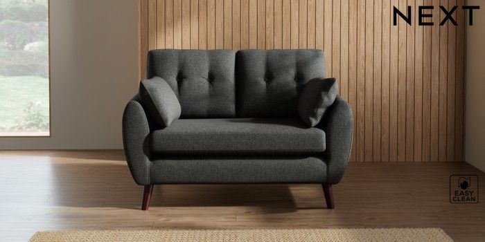 7.2.10 Wilson Buttoned Back 2 Seater Small Sofa Tweedy Blend Easy Clean Charcoal Grey Retro Tapered - Dark Brown | Made Click here to use our website with more accessibility support, for example screen readers