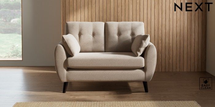 7.2.10 Wilson Buttoned Back 2 Seater Small Sofa Tweedy Blend Easy Clean Light Dove Natural Retro Tapered - Dark | Made Click here to use our website with more accessibility support, for example screen readers