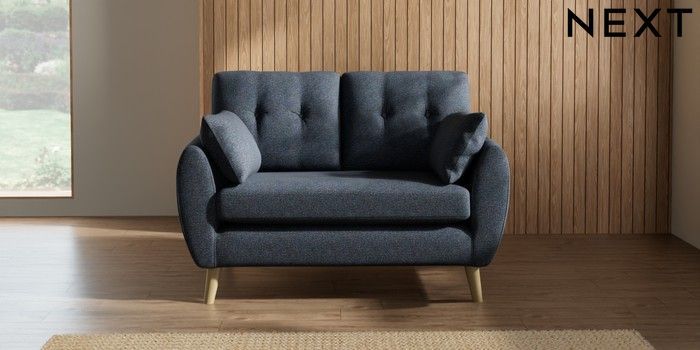 7.2.10 Wilson Buttoned Back 2 Seater Small Sofa Tweedy Chenille Navy Blue Retro Tapered - Light | Made Click here to use our website with more accessibility support, for example screen readers