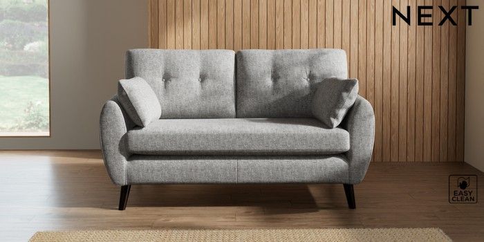 7.2.10 Wilson Buttoned Back 2 Seater Sofa Chunky Boucle Easy Clean Light Grey Retro Tapered - Dark | Made Click here to use our website with more accessibility support, for example screen readers