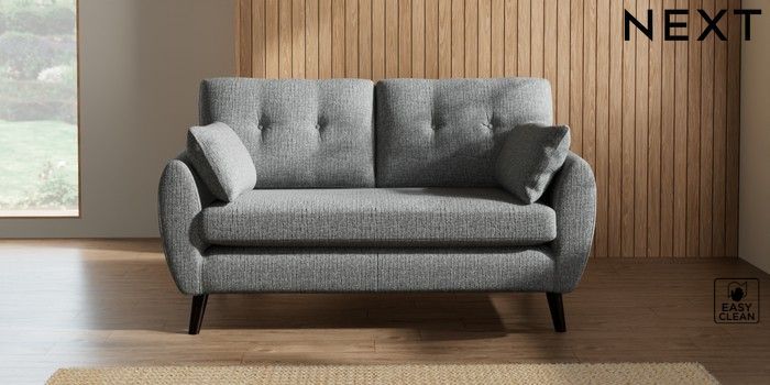 7.2.10 Wilson Buttoned Back 2 Seater Sofa Chunky Boucle Easy Clean Mid Grey Retro Tapered - Dark | Made Click here to use our website with more accessibility support, for example screen readers