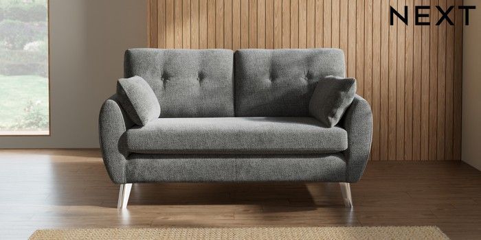 7.2.10 Wilson Buttoned Back 2 Seater Sofa Chunky Chenille Dark Grey Metal Tapered - Chrome | Made Click here to use our website with more accessibility support, for example screen readers