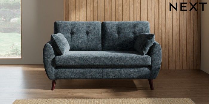 7.2.10 Wilson Buttoned Back 2 Seater Sofa Chunky Chenille Dark Navy Blue Retro Tapered - Dark Brown | Made Click here to use our website with more accessibility support, for example screen readers