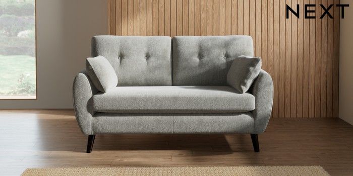 7.2.10 Wilson Buttoned Back 2 Seater Sofa Chunky Chenille Light Grey Retro Tapered - Dark | Made Click here to use our website with more accessibility support, for example screen readers