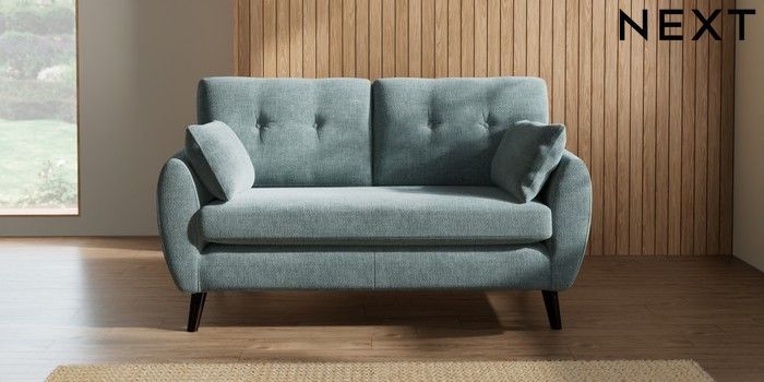 7.2.10 Wilson Buttoned Back 2 Seater Sofa Chunky Chenille Light Teal Green Retro Tapered - Dark | Made Click here to use our website with more accessibility support, for example screen readers