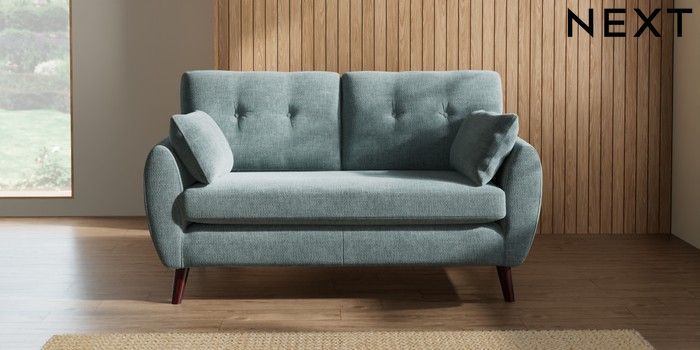 7.2.10 Wilson Buttoned Back 2 Seater Sofa Chunky Chenille Light Teal Green Retro Tapered - Dark Brown | Made Click here to use our website with more accessibility support, for example screen readers