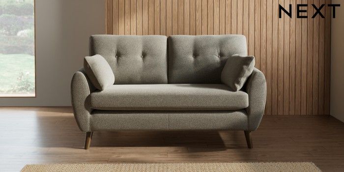 7.2.10 Wilson Buttoned Back 2 Seater Sofa Chunky Marl Light Olive Green Retro Tapered - Mid | Made Click here to use our website with more accessibility support, for example screen readers