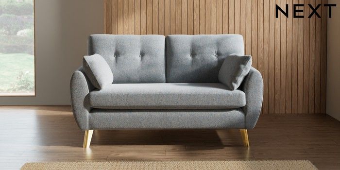 7.2.10 Wilson Buttoned Back 2 Seater Sofa Chunky Marl Mid Grey Metal Tapered - Gold | Made Click here to use our website with more accessibility support, for example screen readers