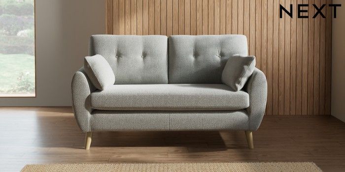 7.2.10 Wilson Buttoned Back 2 Seater Sofa Chunky Texture Dove Retro Tapered - Light | Made Click here to use our website with more accessibility support, for example screen readers