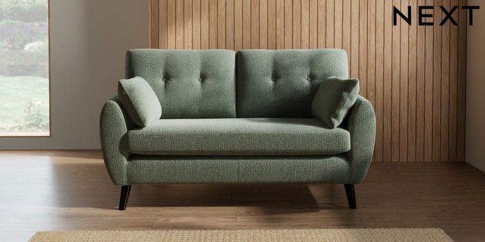 7.2.10 Wilson Buttoned Back 2 Seater Sofa Chunky Texture Mid Forest Green Retro Tapered - Dark | Made Click here to use our website with more accessibility support, for example screen readers