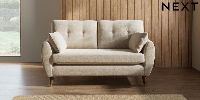 7.2.10 Wilson Buttoned Back 2 Seater Sofa Chunky Weave Cream Low Retro Tapered Metal Cap - Mid | Made Click here to use our website with more accessibility support, for example screen readers