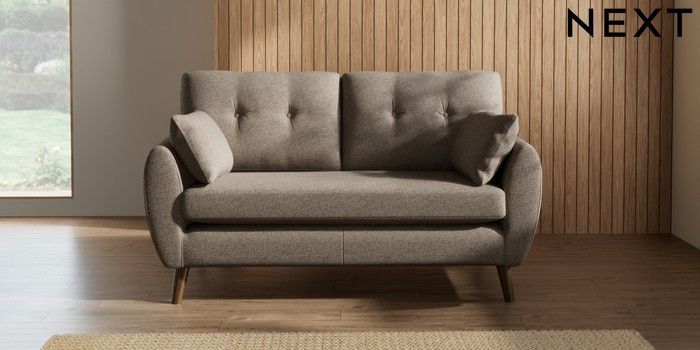 7.2.10 Wilson Buttoned Back 2 Seater Sofa Chunky Weave Dark Natural Retro Tapered - Mid | Made Click here to use our website with more accessibility support, for example screen readers