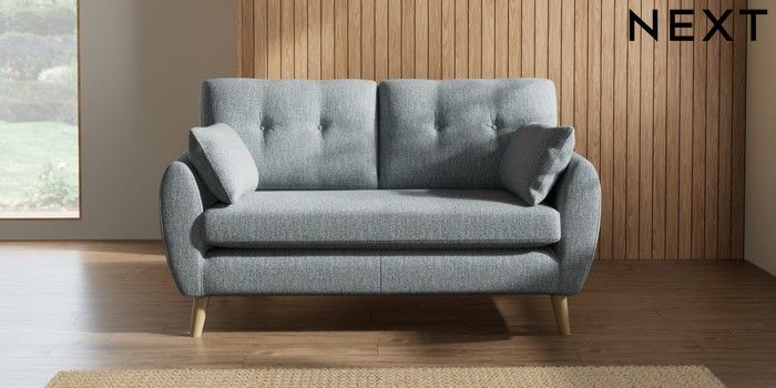 7.2.10 Wilson Buttoned Back 2 Seater Sofa Chunky Weave Mid Blue Retro Tapered - Light | Made Click here to use our website with more accessibility support, for example screen readers
