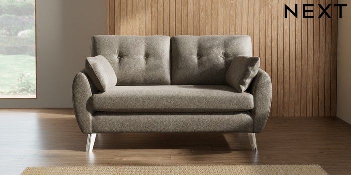 7.2.10 Wilson Buttoned Back 2 Seater Sofa Cotswold Chenille Mid Mink Brown Metal Tapered - Chrome | Made Click here to use our website with more accessibility support, for example screen readers