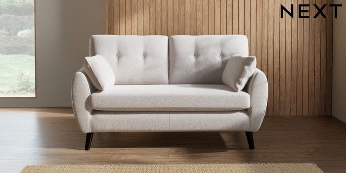 7.2.10 Wilson Buttoned Back 2 Seater Sofa Cotswold Chenille Oyster Retro Tapered - Dark | Made Click here to use our website with more accessibility support, for example screen readers