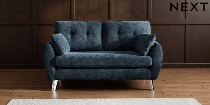 7.2.10 Wilson Buttoned Back 2 Seater Sofa Distressed Velour Midnight Blue Metal Tapered - Chrome | Made Click here to use our website with more accessibility support, for example screen readers