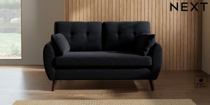 7.2.10 Wilson Buttoned Back 2 Seater Sofa Fine Chenille Easy Clean Black Retro Tapered - Dark Brown | Made Click here to use our website with more accessibility support, for example screen readers