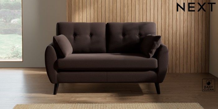 7.2.10 Wilson Buttoned Back 2 Seater Sofa Fine Chenille Easy Clean Chocolate Brown Retro Tapered - Dark | Made Click here to use our website with more accessibility support, for example screen readers