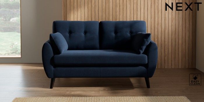 7.2.10 Wilson Buttoned Back 2 Seater Sofa Fine Chenille Easy Clean Dark Navy Blue Retro Tapered - Dark | Made Click here to use our website with more accessibility support, for example screen readers