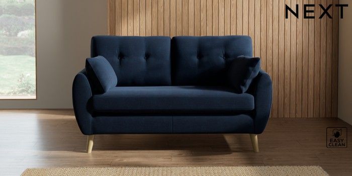 7.2.10 Wilson Buttoned Back 2 Seater Sofa Fine Chenille Easy Clean Dark Navy Blue Retro Tapered - Light | Made Click here to use our website with more accessibility support, for example screen readers