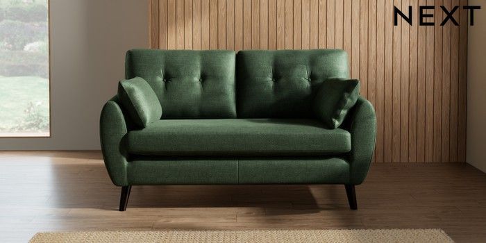 7.2.10 Wilson Buttoned Back 2 Seater Sofa Luxe Chenille Dark Green Retro Tapered - Dark | Made Click here to use our website with more accessibility support, for example screen readers