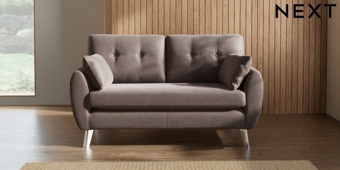7.2.10 Wilson Buttoned Back 2 Seater Sofa Luxe Chenille Mink Brown Metal Tapered - Chrome | Made Click here to use our website with more accessibility support, for example screen readers
