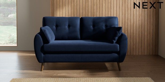 7.2.10 Wilson Buttoned Back 2 Seater Sofa Luxe Chenille Navy Blue Retro Tapered - Mid | Made Click here to use our website with more accessibility support, for example screen readers
