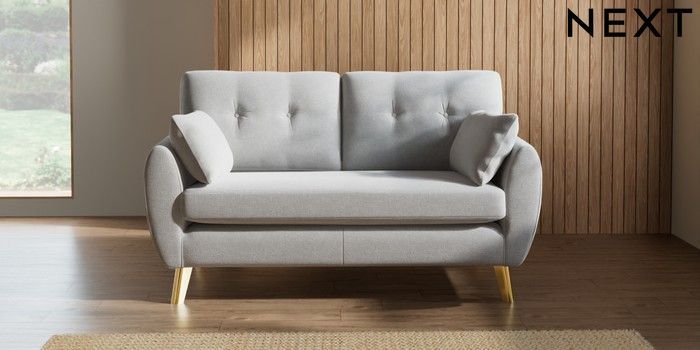 7.2.10 Wilson Buttoned Back 2 Seater Sofa Natural Mix Light Grey Metal Tapered - Gold | Made Click here to use our website with more accessibility support, for example screen readers