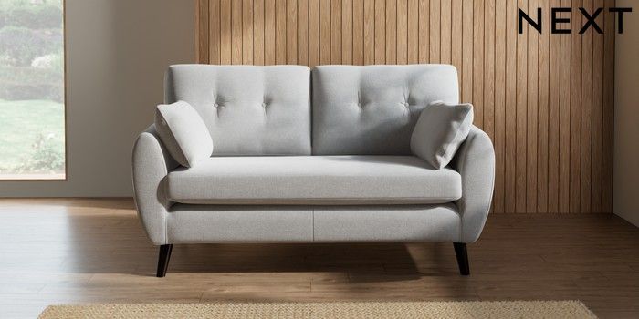 7.2.10 Wilson Buttoned Back 2 Seater Sofa Natural Mix Light Grey Retro Tapered - Dark | Made Click here to use our website with more accessibility support, for example screen readers