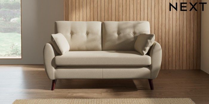 7.2.10 Wilson Buttoned Back 2 Seater Sofa Natural Mix Light Natural Retro Tapered - Dark Brown | Made Click here to use our website with more accessibility support, for example screen readers