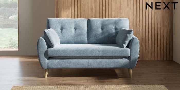7.2.10 Wilson Buttoned Back 2 Seater Sofa Plush Chenille Light Blue Retro Tapered - Light | Made Click here to use our website with more accessibility support, for example screen readers