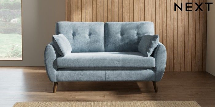 7.2.10 Wilson Buttoned Back 2 Seater Sofa Plush Chenille Light Blue Retro Tapered - Mid | Made Click here to use our website with more accessibility support, for example screen readers
