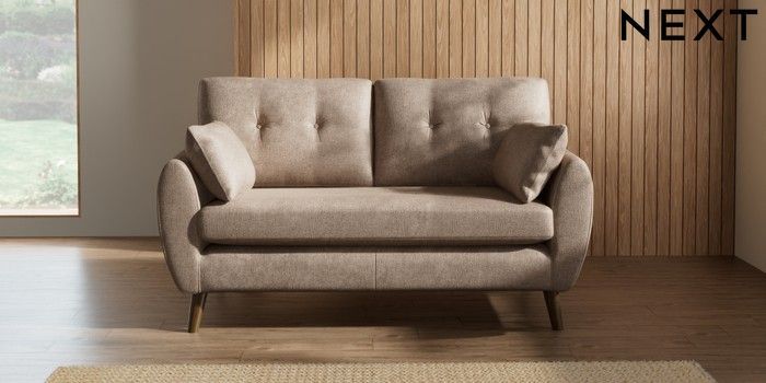 7.2.10 Wilson Buttoned Back 2 Seater Sofa Plush Chenille Mid Natural Retro Tapered - Mid | Made Click here to use our website with more accessibility support, for example screen readers