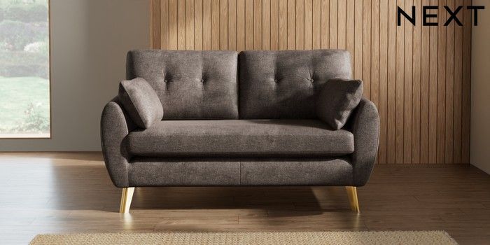 7.2.10 Wilson Buttoned Back 2 Seater Sofa Plush Chenille Mink Brown Metal Tapered - Gold | Made Click here to use our website with more accessibility support, for example screen readers