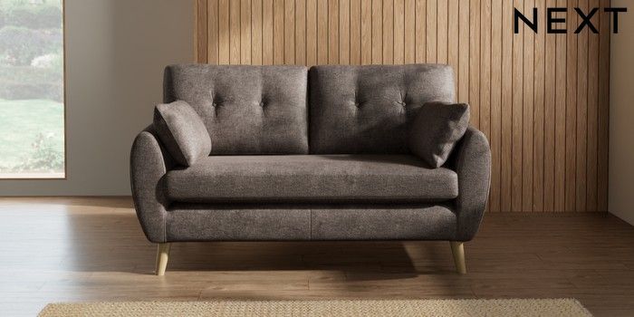 7.2.10 Wilson Buttoned Back 2 Seater Sofa Plush Chenille Mink Brown Retro Tapered - Light | Made Click here to use our website with more accessibility support, for example screen readers