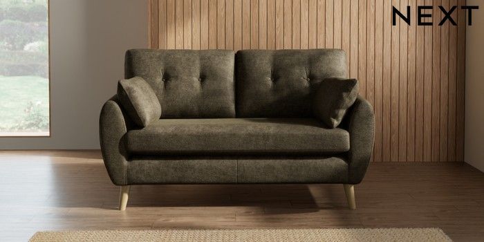 7.2.10 Wilson Buttoned Back 2 Seater Sofa Plush Chenille Moss Green Retro Tapered - Light | Made Click here to use our website with more accessibility support, for example screen readers