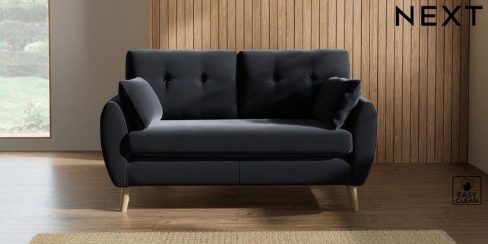 7.2.10 Wilson Buttoned Back 2 Seater Sofa Plush Velvet Easy Clean Charcoal Grey Retro Tapered - Light | Made Click here to use our website with more accessibility support, for example screen readers