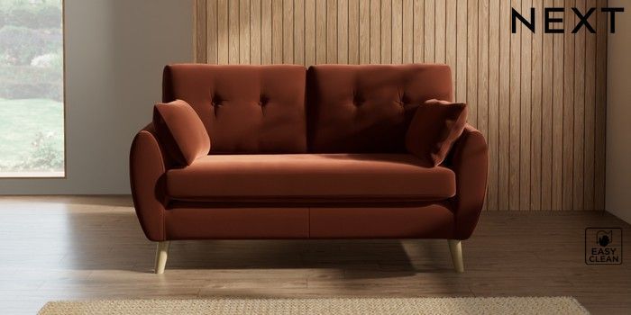 7.2.10 Wilson Buttoned Back 2 Seater Sofa Plush Velvet Easy Clean Ginger Orange Retro Tapered - Light | Made Click here to use our website with more accessibility support, for example screen readers