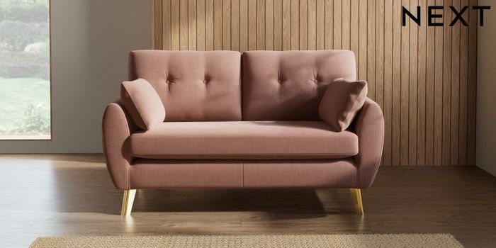 7.2.10 Wilson Buttoned Back 2 Seater Sofa Relaxed Linen Look Light Rust Brown Metal Tapered - Gold | Made Click here to use our website with more accessibility support, for example screen readers