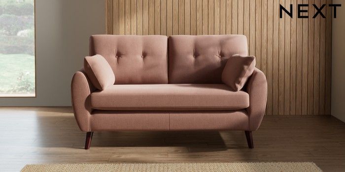 7.2.10 Wilson Buttoned Back 2 Seater Sofa Relaxed Linen Look Light Rust Brown Retro Tapered - Dark Brown | Made Click here to use our website with more accessibility support, for example screen readers
