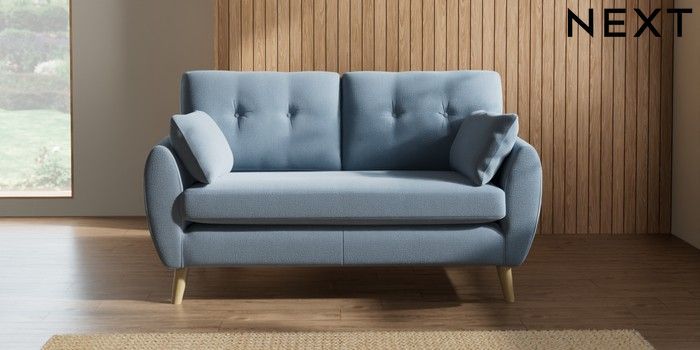 7.2.10 Wilson Buttoned Back 2 Seater Sofa Relaxed Linen Look Mid Blue Retro Tapered - Light | Made Click here to use our website with more accessibility support, for example screen readers