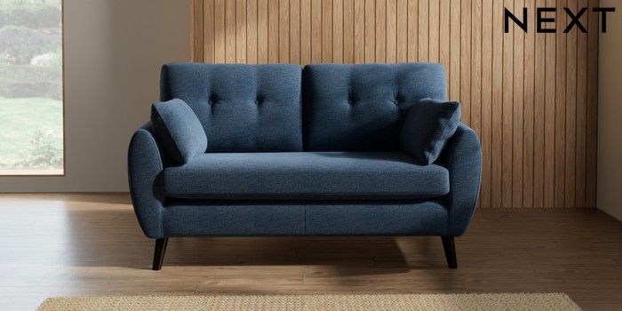 7.2.10 Wilson Buttoned Back 2 Seater Sofa Ripple Chenille Dark Blue Retro Tapered - Dark | Made Click here to use our website with more accessibility support, for example screen readers