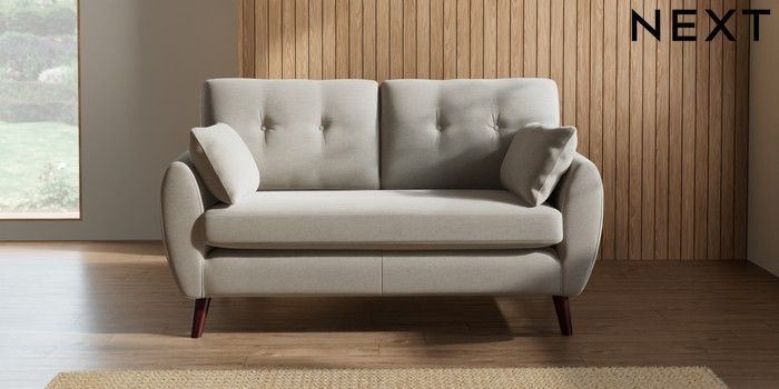 7.2.10 Wilson Buttoned Back 2 Seater Sofa Ripple Chenille Light Natural Retro Tapered - Dark Brown | Made Click here to use our website with more accessibility support, for example screen readers