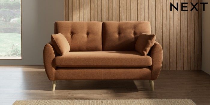 7.2.10 Wilson Buttoned Back 2 Seater Sofa Ripple Chenille Mid Rust Brown Retro Tapered - Light | Made Click here to use our website with more accessibility support, for example screen readers