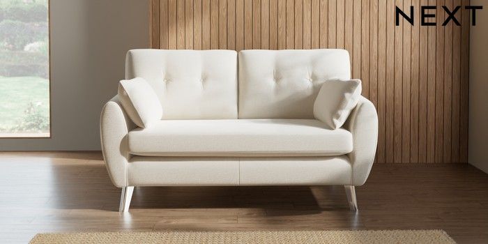 7.2.10 Wilson Buttoned Back 2 Seater Sofa Ripple Chenille Oyster Metal Tapered - Chrome | Made Click here to use our website with more accessibility support, for example screen readers