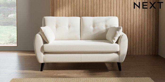 7.2.10 Wilson Buttoned Back 2 Seater Sofa Ripple Chenille Oyster Retro Tapered - Dark | Made Click here to use our website with more accessibility support, for example screen readers