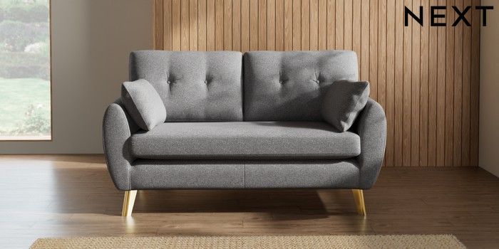 7.2.10 Wilson Buttoned Back 2 Seater Sofa Studio Chenille Mid Grey Metal Tapered - Gold | Made Click here to use our website with more accessibility support, for example screen readers