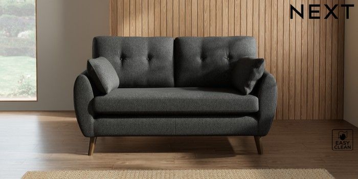 7.2.10 Wilson Buttoned Back 2 Seater Sofa Tweedy Blend Easy Clean Charcoal Grey Retro Tapered - Mid | Made Click here to use our website with more accessibility support, for example screen readers