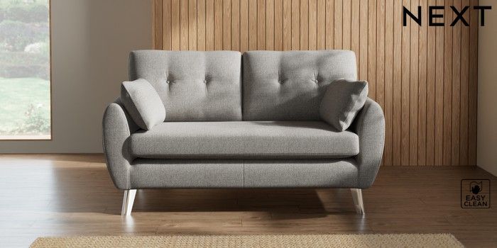 7.2.10 Wilson Buttoned Back 2 Seater Sofa Woven Chenille Easy Clean Light Grey Metal Tapered - Chrome | Made Click here to use our website with more accessibility support, for example screen readers