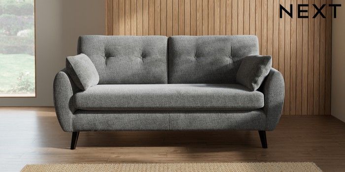 7.2.10 Wilson Buttoned Back 3 Seater Small Sofa Chunky Chenille Dark Grey Retro Tapered - Dark | Made Click here to use our website with more accessibility support, for example screen readers